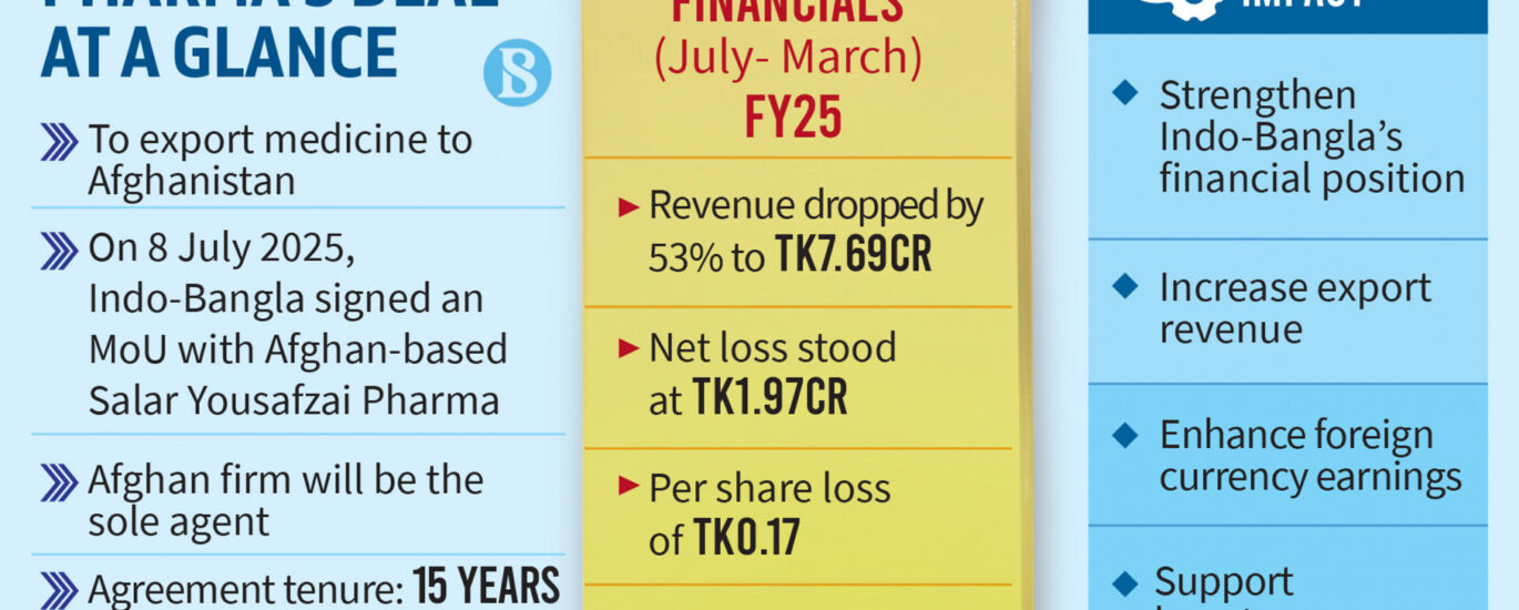 Indo-Bangla Pharmaceuticals, a listed company on the stock exchanges, has signed a memorandum of understanding (MoU) with Salar Yousafzai Pharma, an Afghanistan-based firm, to export pharmaceutical products to the Afghan market.